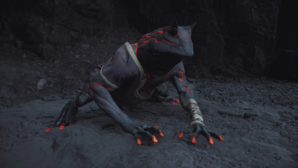 Angered by the frog’s interference, the purple-skinned beast turned to attack it. The frog opened its mouth, and with a gulp, spewed a stream of fire, forcing the beast to retreat several steps.