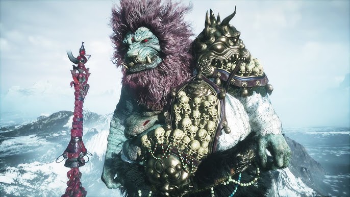 Upon Mount Mei’s frozen zenith—unlocked via the Great Pagoda’s rift after all secret realms conquered and Erlang the Sacred Divinity felled—the Stone Monkey endures the Four Kings‘ onslaught, only for the true foe to descend: Erlang Shen, titanic heavenly warrior, blade agleam in the blizzard’s fury.